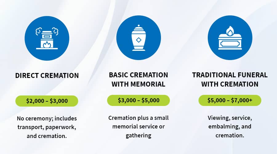 Direct cremation remains the most cost-effective option, including transportation of the deceased, the required paperwork and permits, the cremation itself, and the return of the remains to the family. Because there’s no ceremony or embalming, it minimizes your costs but still lets you hold a private memorial later.