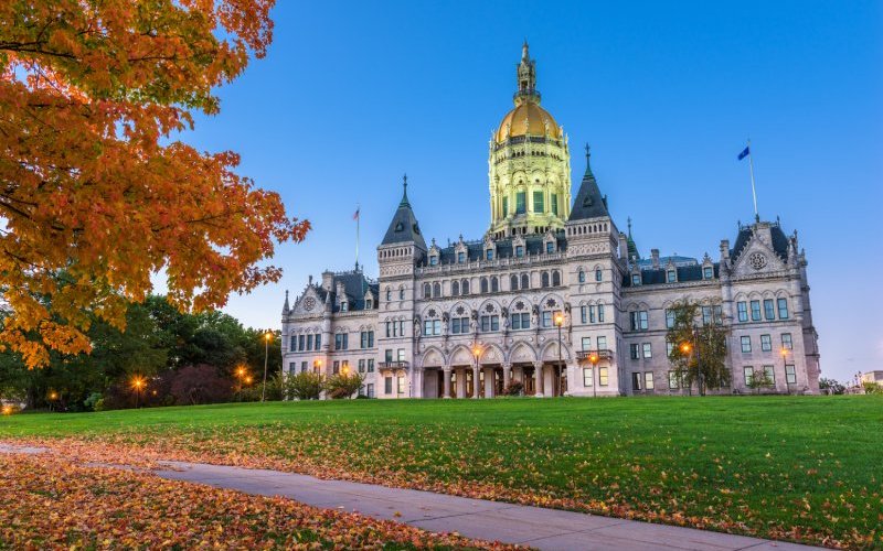 Connecticut State Capitol in Hartford, Connecticut, USA during autumn.
